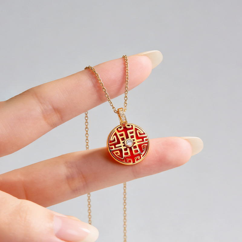 SHEEN YOUNG Red Agate Good Luck Rotating Pendant Necklace